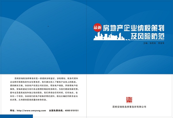 為了讓廣大房地產(chǎn)企業(yè)的財務(wù)人員與我們一起分享實際操作的案例和經(jīng)驗,我們決定在云南省內(nèi)免費發(fā)放《房地產(chǎn)企業(yè)納稅策劃及風(fēng)險防范》一書,若有需要者請發(fā)郵件至Lyhcta@163.com,郵件請注明您的姓名、地址、公司名稱、手機電話、座機電話和郵編,我們將以快遞的形式寄到您手中,當(dāng)然,郵寄費需要您來承擔(dān)。